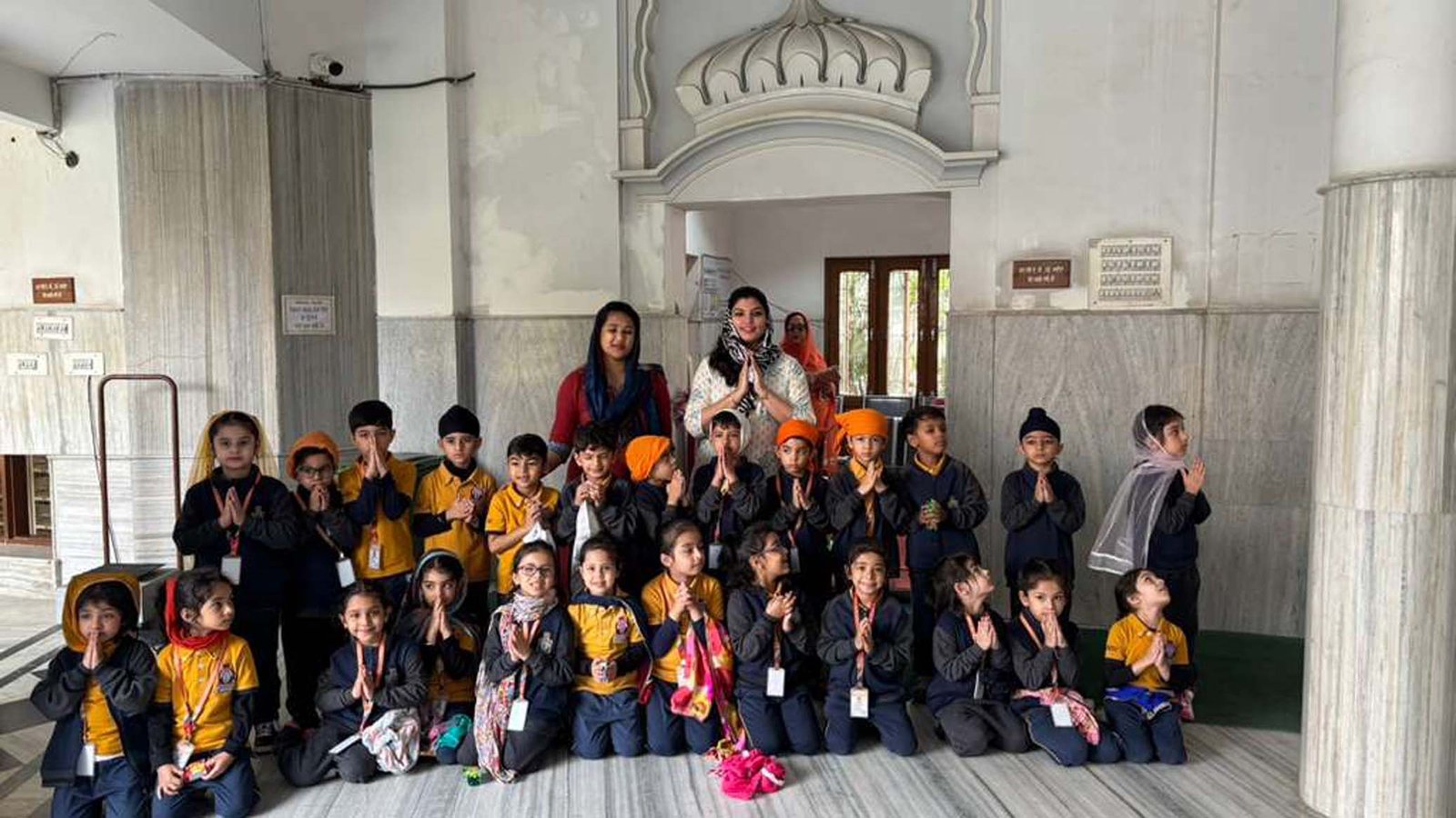 On the occasion of Guru Nanak Dev Ji’s Birthday, the little ones of Nursery, LKG, and UKG visited the Gurudwara on 31st October 2025 with great excitement and devotion. The children, along with their teachers, went by bus, joyfully singing along the way. On reaching the Gurdwara, they bowed their heads in reverence and offered prayers, experiencing the calm and spiritual atmosphere of the holy place.